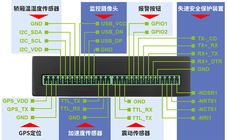 在整套电梯物联网管理方案中,将GPS定位传感器、轿厢温度传感器、加速度传感器、报警装置接入米兰R100;利用R100的边缘计算能力,对采集到的数据进行运算和整形,迅速识别并响应异常运行状态;最终通过无限局域网络或蜂窝数据网络上发至管理平台,完成电梯的物联网接入。