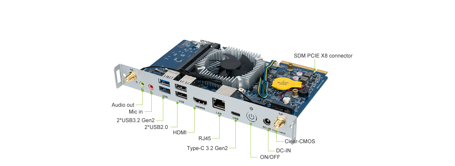 优秀的视频显示,米兰科技SDM-L613拥有1个HDMI (7680 x 4320 @60 Hz)接口,支持60HZ刷新率,实现8k超清显示,SDM(PCIE X8)可以传输 HDMI2.0 (4096 x 2304 @60 Hz)、DP1.2 (4096 x 2304 @60 Hz)、USB3.2 Gen1、UART、GSPI、I2C、PCIe 和 SYS_FAN 信号连接。