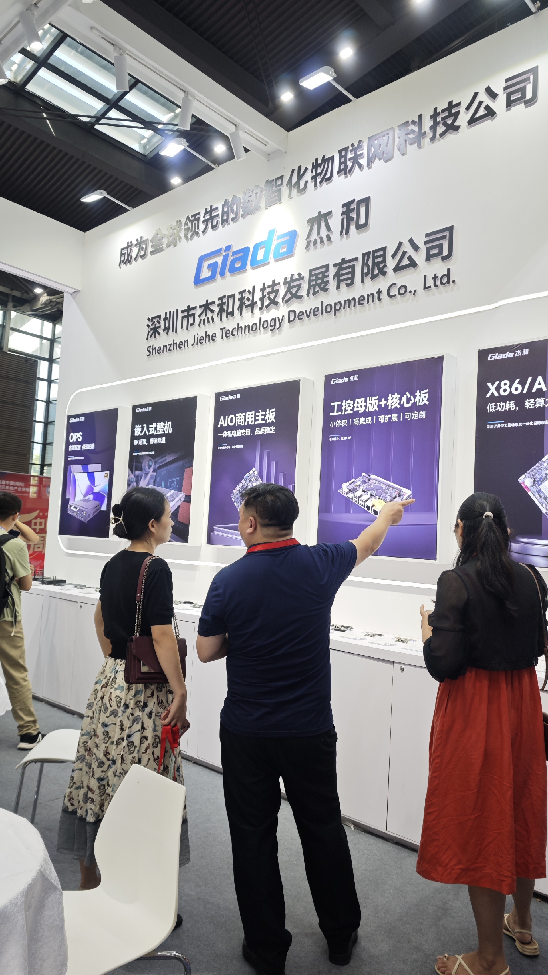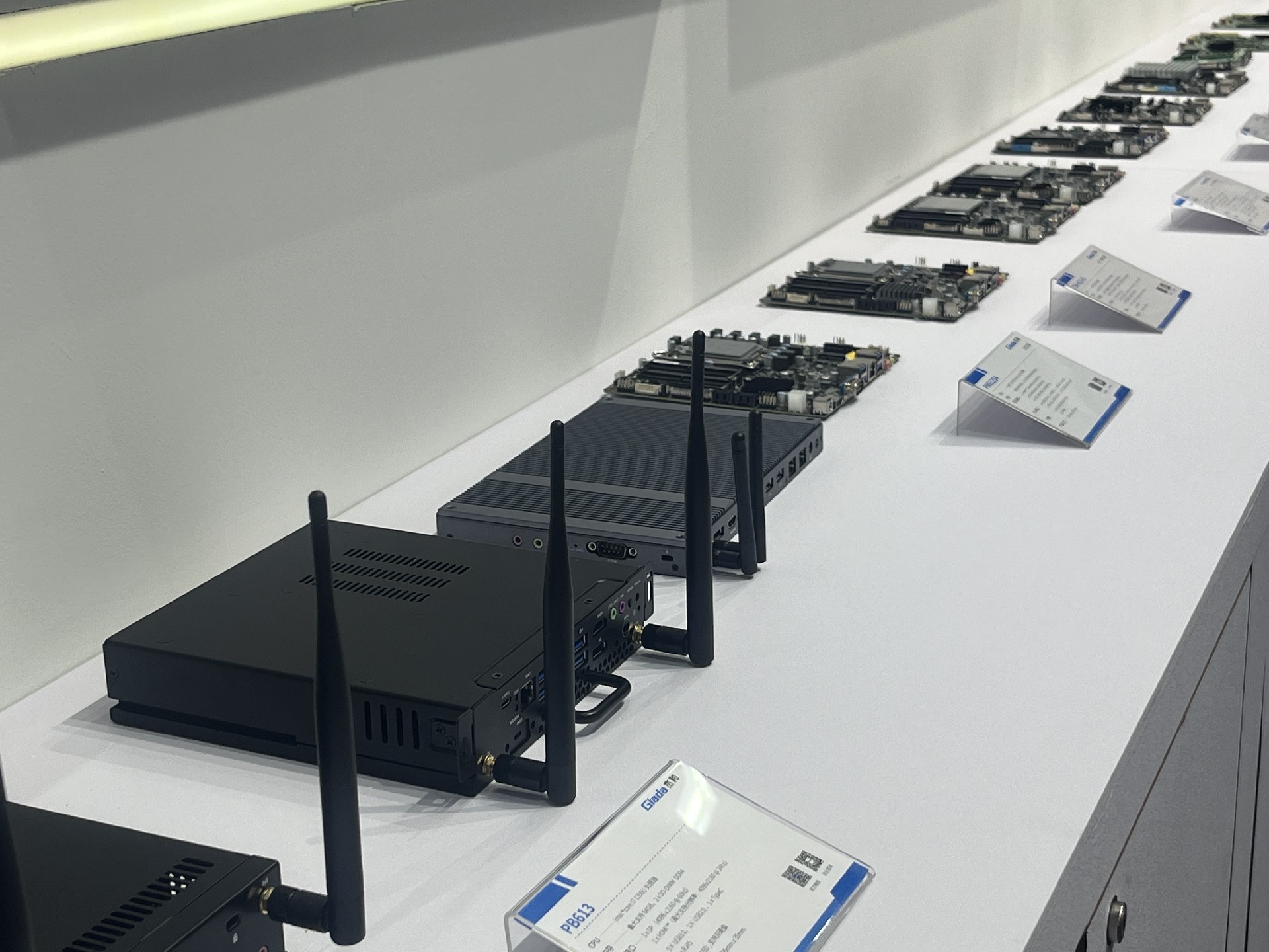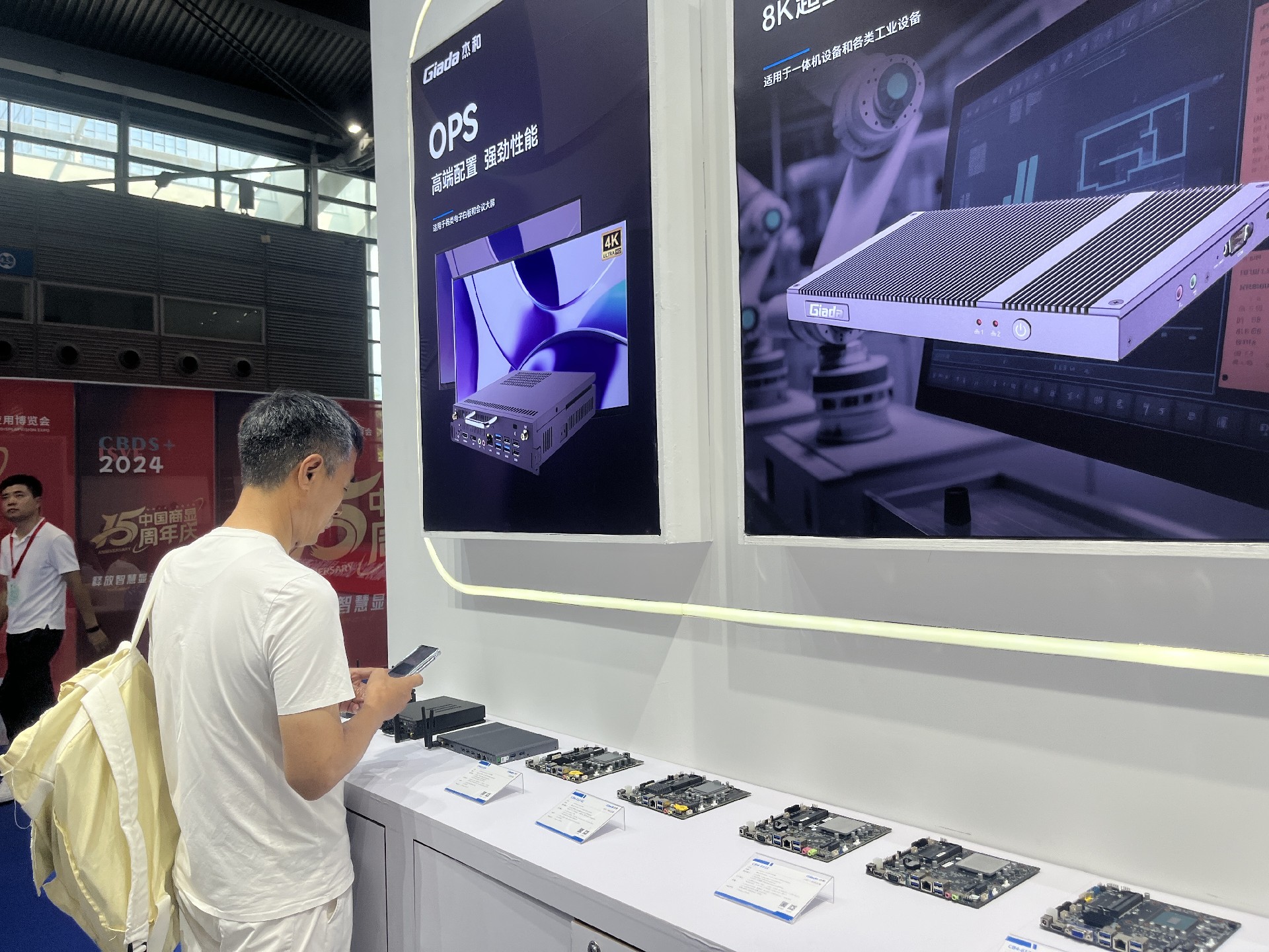 米兰科技展位放置在c位的明星产品和最新产品吸引了众多参观者的目光。展台下方整齐排列着公司的产品,包括主板、嵌入式整机、OPS等,这些产品不仅适用于商业展示领域,还广泛应用于工业、制造业和教育业等多个行业。