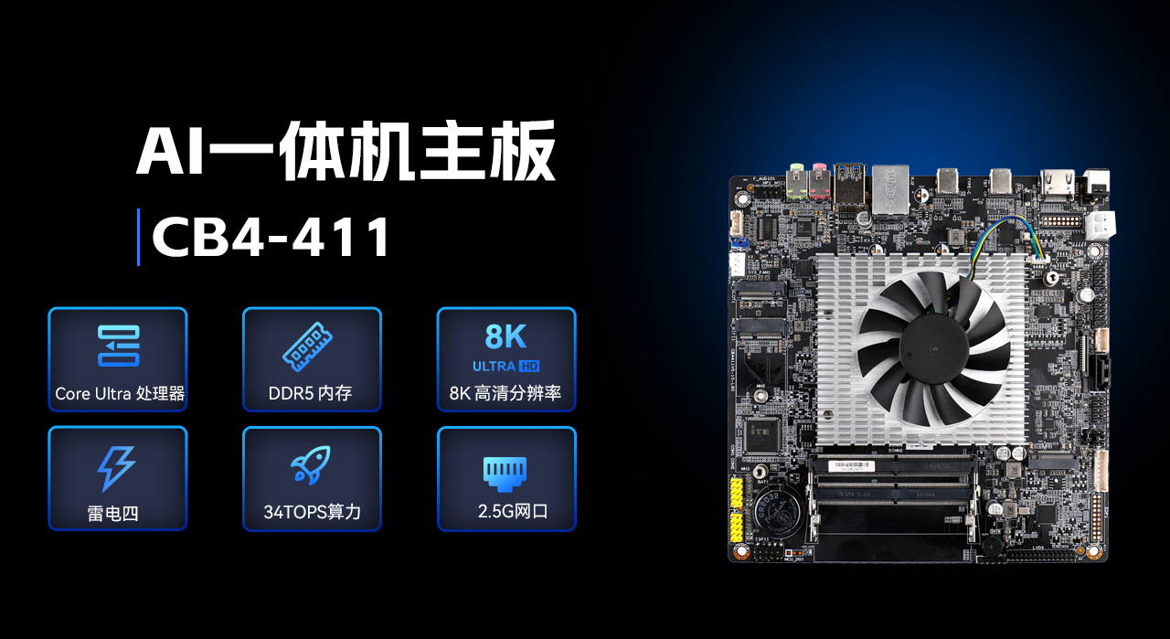 基于一体机行业需求,米兰科技推出一体机主板CB4-411,搭载 Intel® Meteor Lake 平台处理器,用户可以直接在电脑上处理AI工作,一体机本身集成了显示器、主机和其他硬件组件,设计简洁且节省空间,在办公、家庭娱乐、数字创作等多种场景下,CB4-411可以助力一体机加速图像识别、图形渲染、视频编辑等任务。