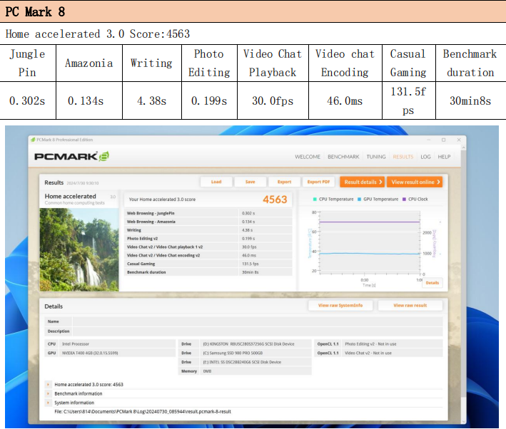 在系统综合性能方面,WA814同样表现出色。PCMark 7总分10385,PCMark 8得分4563,PCMark 10得分5736,说明它不仅能应对复杂应用程序,还能胜任高效率的多任务办公。