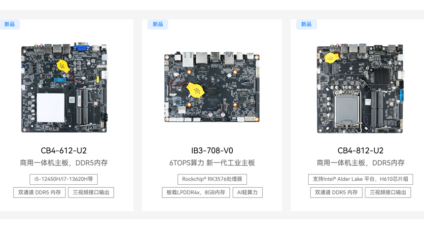上半年,米兰科技在主板产品线持续扩充,新增多款覆盖不同场景的主板新品。在一体机领域,推出三款支持高性能运行的新主板,CB4-812-U2 、 CB4-612-U2 支持DDR5内存,提升整机运行效率;CB4-209-V0 搭载 Intel N150 处理器,满足轻量办公与教学一体机需求。