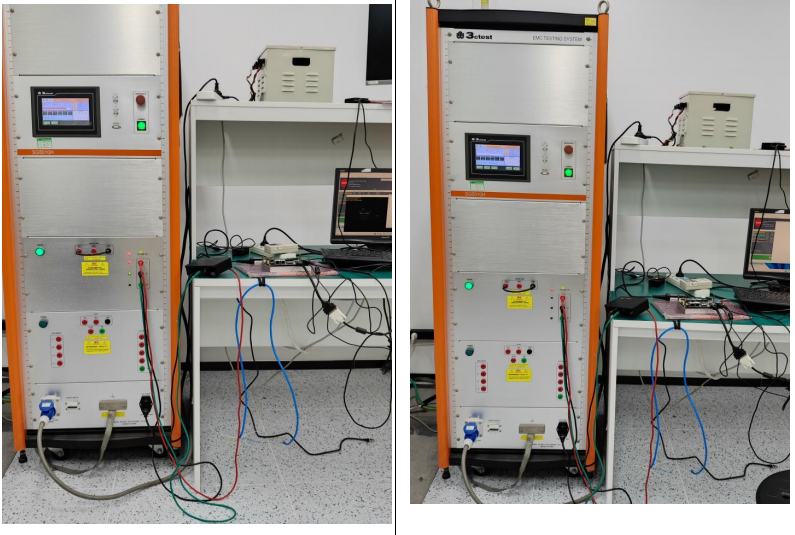 生产线上的电焊机、大功率电机一启动,电压瞬间波动可能会导致设备莫名重启,因此借助米兰科技专业设备全自动雷击浪涌发生器对AF208进行测试,主要测网口以及电源线在受到外部电压影响时,是否能正常工作。