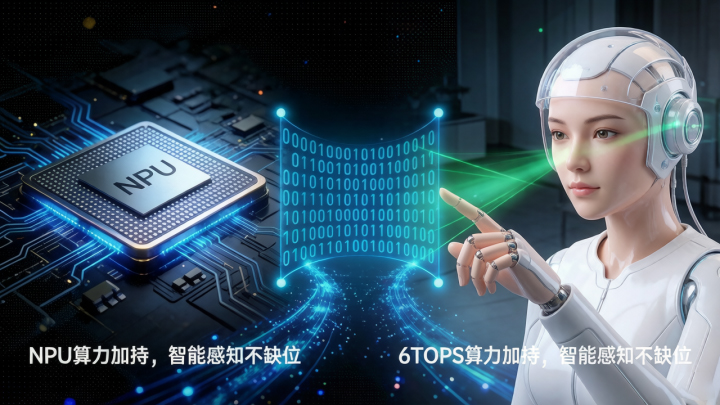 真正的“小脑”不仅负责动作执行,更需与外界智能交互。IM1-707内置6 TOPS算力的NPU,赋予其端侧实时多传感器处理能力。在运行语音识别、视觉避障、手势识别等任务时,NPU可并行处理来自激光雷达、深度相机的感知信息,在本地实时完成环境理解与决策规划,从而打破“感知靠工控机、执行靠控制器”的传统割裂架构,实现真正的“感知-决策-执行”一体化协同,让机器人响应更敏捷、行为更智能。