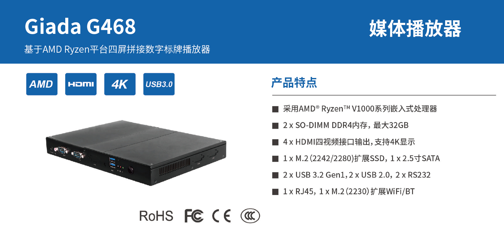 米兰除了为广大商户提供数字化智慧运营系统软件,同时也配套智能硬件产品,帮助商户快速地建立起数字化智慧门店,提供硬软一站式服务。米兰G468可满足全场景全行业的广告投放、招牌商品推荐、信息发布等应用场景。