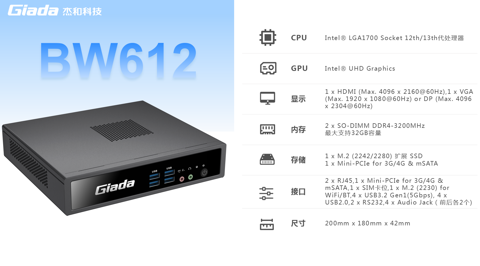 米兰云终端BW612采用lntel@LGA1700Socket 12代、13代处理器,比上一代 BW611 计算性能提升约 23%,更强算力带来更强体验。主板多层板设计,配备超高品质被动元件,支持赛扬、奔腾等多种处理器定制,可选择 Windows7、Windows10 等操作系统。