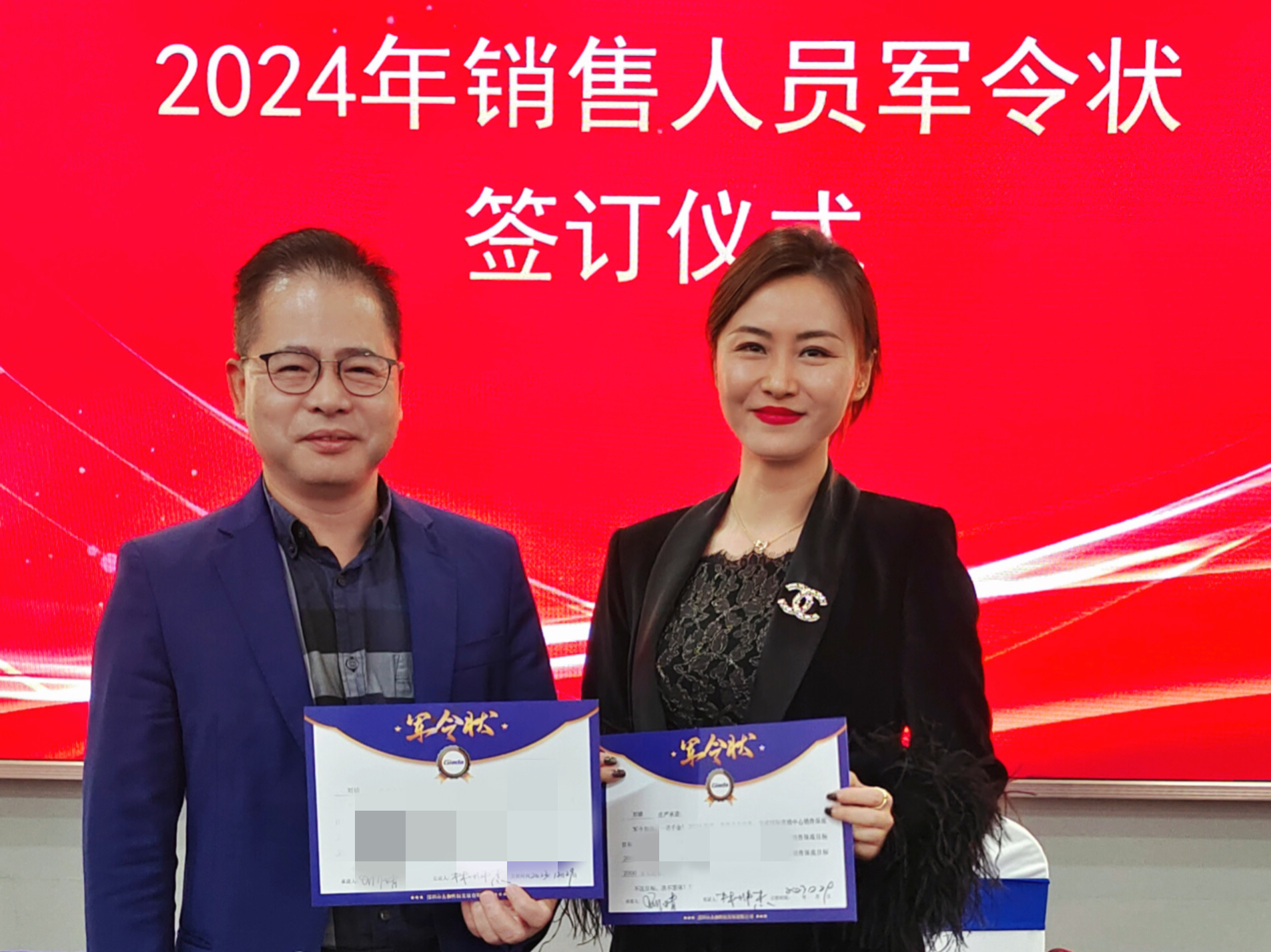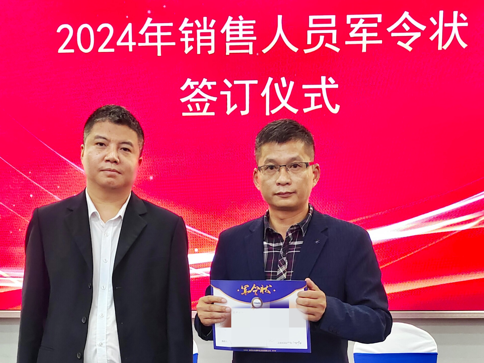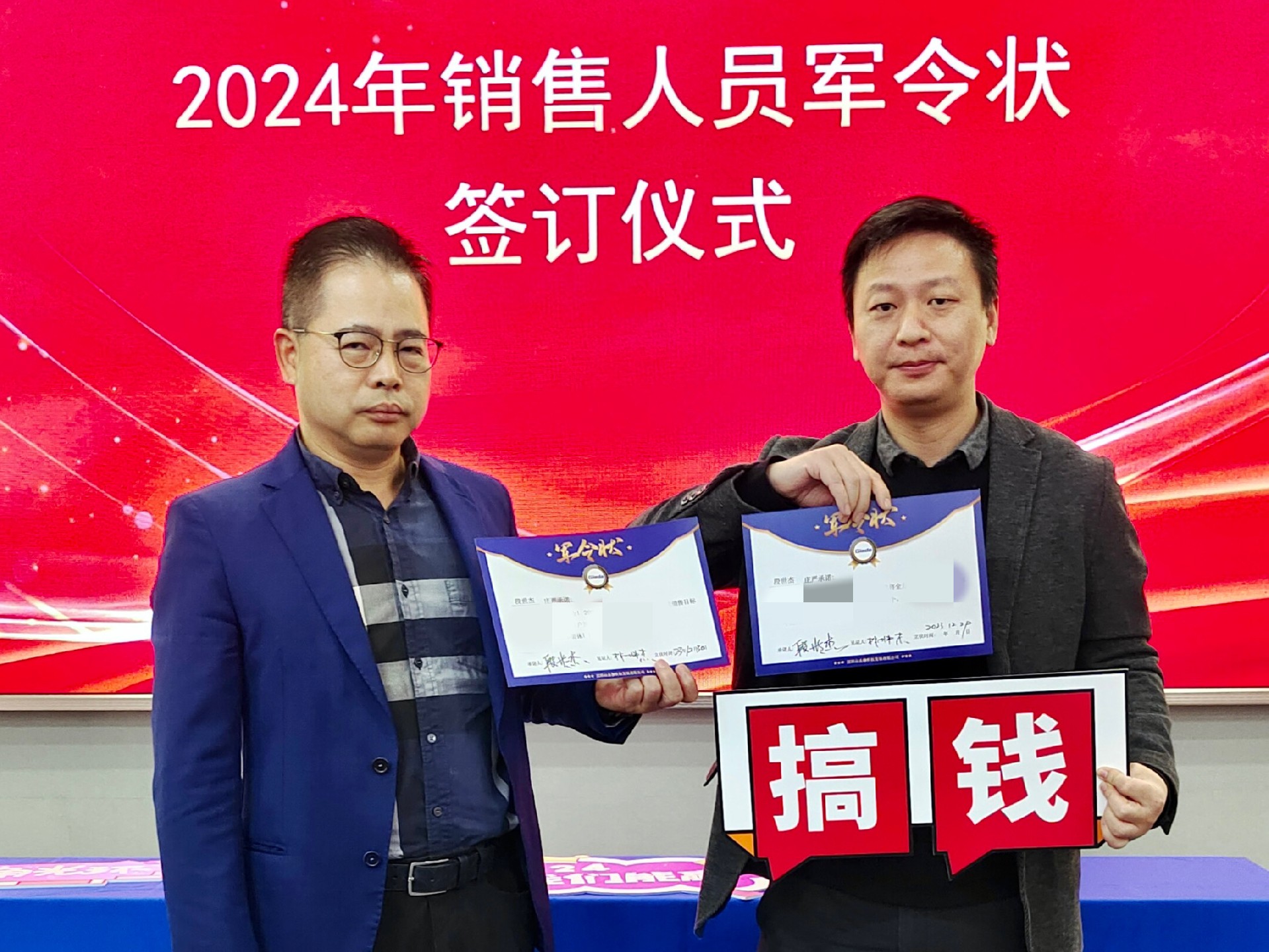 2024公司年度战略目标确立,言出必行,使命必达,国际/国内销售团队为了共同的目标开始军令状签约仪式。一纸军令状,是米兰科技与销售人员的双向承诺,是压力,更是动力。是不破楼兰终不还的决心,更是春风得意马蹄疾,一日看尽长安花的期待。