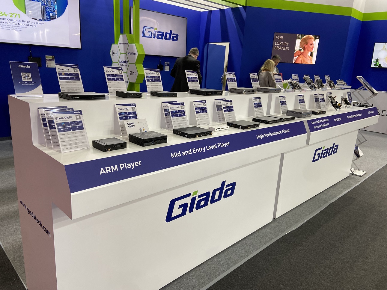 作为2024年的开年首秀,Giada米兰科技携一众极具竞争优势的媒体播放器、AI边缘计算机和网络设备等最新技术产品,以及智能显示、智慧零售、智慧安防等物联网硬件解决方案亮相现场,全方位展示了“物联万物,米兰智造”战略赋能智慧商显领域的创新引力,推动行业加速进入万物互联的新世界。