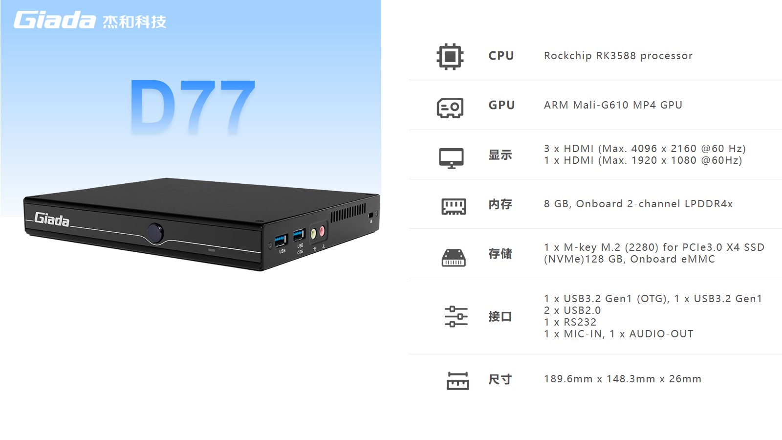 媒体播放器主要应用在大型商场、校园、户外大屏、超市、机场等公共场所,通过大屏幕终端显示设备,发布商业、财经和娱乐信息的多媒体专业视听系统,以其震撼的视觉效果、强烈的画面冲击力和高曝光率等特点,媒体播放器已经成为成为品牌传递信息、展示形象的重要渠道。米兰媒体播放器D77能够输出4个独立且支持4K UHD 分辨率的HDMI 屏幕,搭载八核架构,拥有6TOPS 算力的RK3588处理器,采用的ARM Mali-G610 MP4 GPU让D77 具备极其强大的图形性能。
