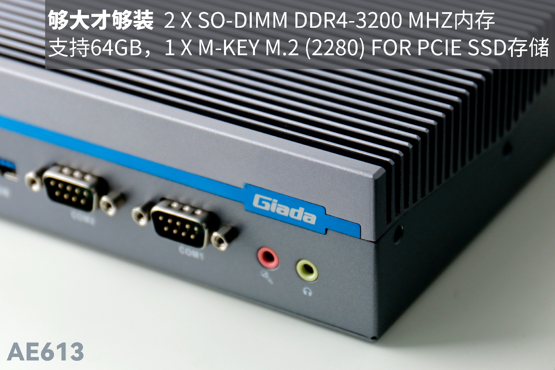 米兰AE613拥有2 x SO-DIMM DDR4-3200 MHz内存、1 x M-Key M.2 (2280) for PCIe SSD存储,最大支持64GB,无论是处理复杂的多任务环境、还是运行高负载的软件都游刃有余。