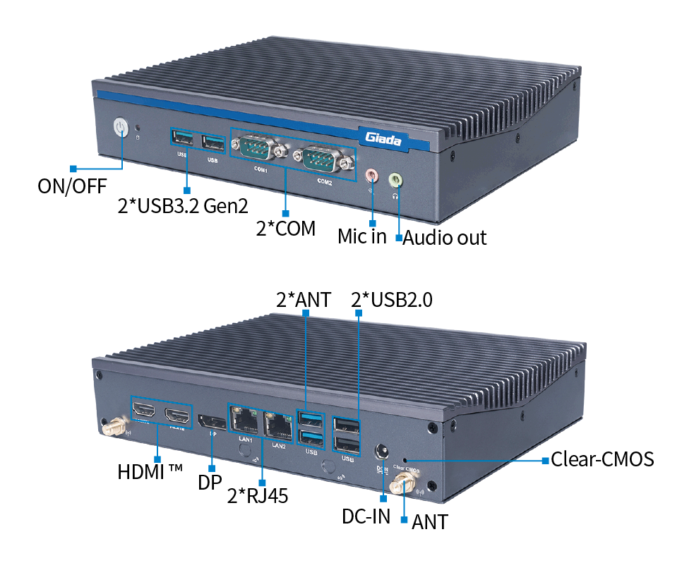米兰AE613支持Windows 11 、Linux Ubuntu系统;拥有丰富接口:双千兆自适应RJ45网口,4 x USB3.1 (10 Gbps),2 x USB2.0,1 x RS232,1 x RS232/422/485,1 x MIC-IN,1 x AUDIO-OUT,帮助用户实现更多功能扩展;并且支持Wi-Fi 6E,可以提供更高的带宽和更少的干扰,支持对无线网络有特定需求场景的应用。