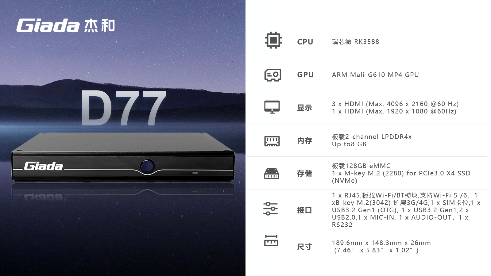 AIoT的落地场景包括智慧工业、智慧零售、智慧社区、智慧城市、智能显示、医疗健康等领域,在实际落地时,对物联网硬件设备的AI算力、数据运算、存储能力,稳定性及可扩展性能等提出更高要求,Giada米兰科技作为行业领先的物联网数智化技术服务商,深入布局AIoT领域,推出AI产品系列,包括3.5寸主板、嵌入式整机、边缘计算盒子等,全方位覆盖了入门级到高性能级,满足不同应用场景的需求,为用户赋能。