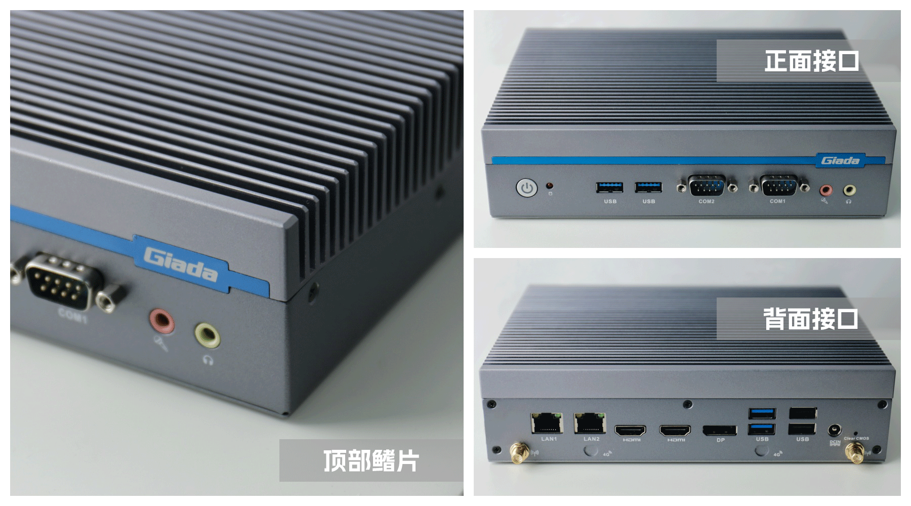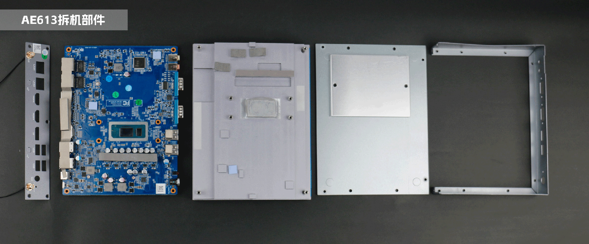 嵌入式整机AE613外包装采用环保材料设计,内部配备适配器、AC线、天线棒、螺丝包,满足通用需求,整机外观机壳顶面采用一体式铝板增高的鳍片散热设计,整机结构采用全铝设计保证散热与抗压性,通过米兰特有无风扇静音散热设计使整体散热效果非常优秀,同时营造出极致安静的工作和使用环境,无噪音,更防尘。