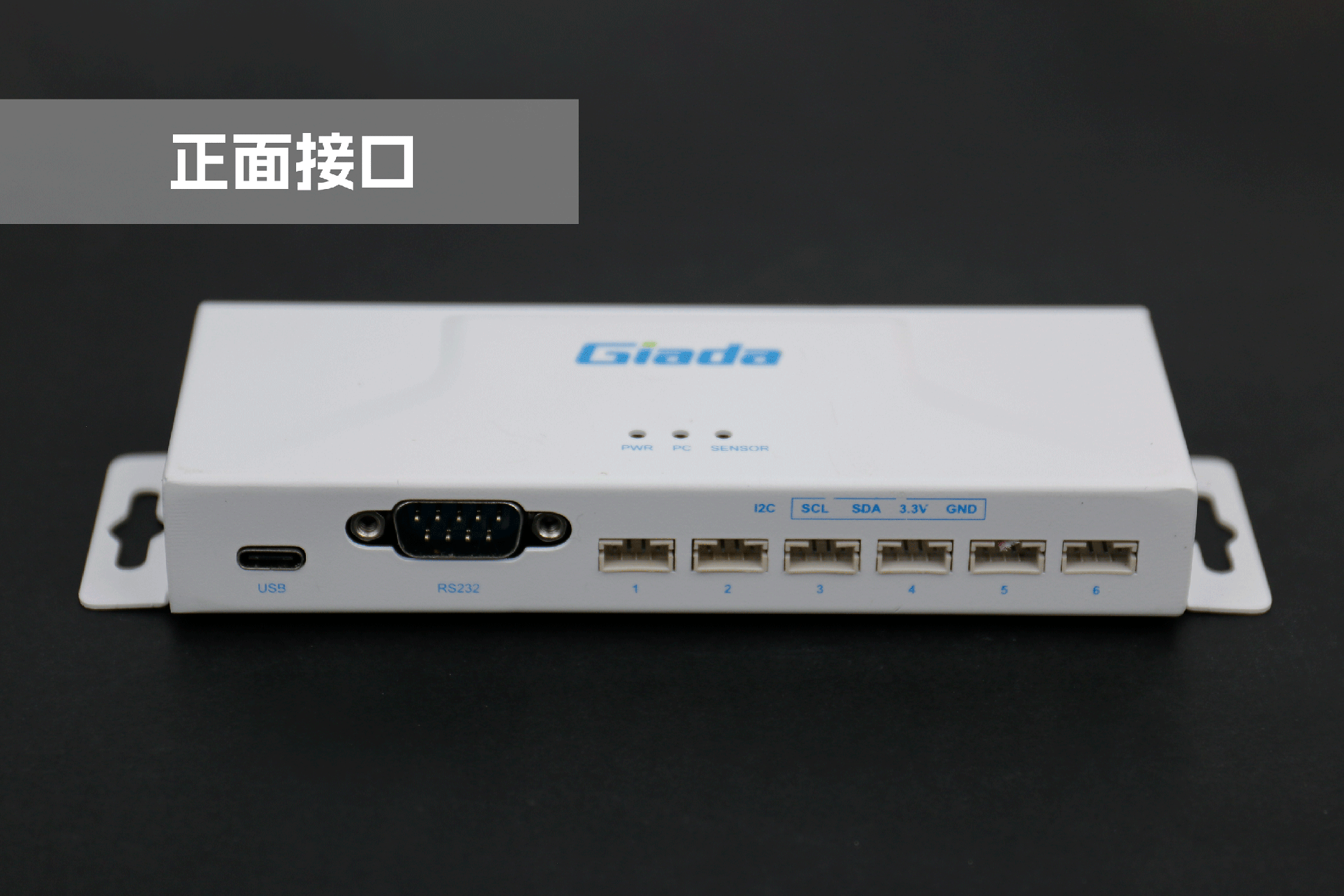 米兰RD01接口丰富,正面配备1个USB Type-C,用来与媒体播放器通信(USB串口)和供电;1个RS232 串口,采用 DB9 端子,支持 DTS 和 CTS 信号,可用来与媒体播放器通信;6个I2C接口,采用6组HY2.0-4PIN端子,用于与传感器通信。在顶部设置3个LED 灯,用于状态指示,LED1通电显示蓝色,LED2与媒体播放器通讯闪烁绿色,LED3与传感器通讯闪烁绿色。