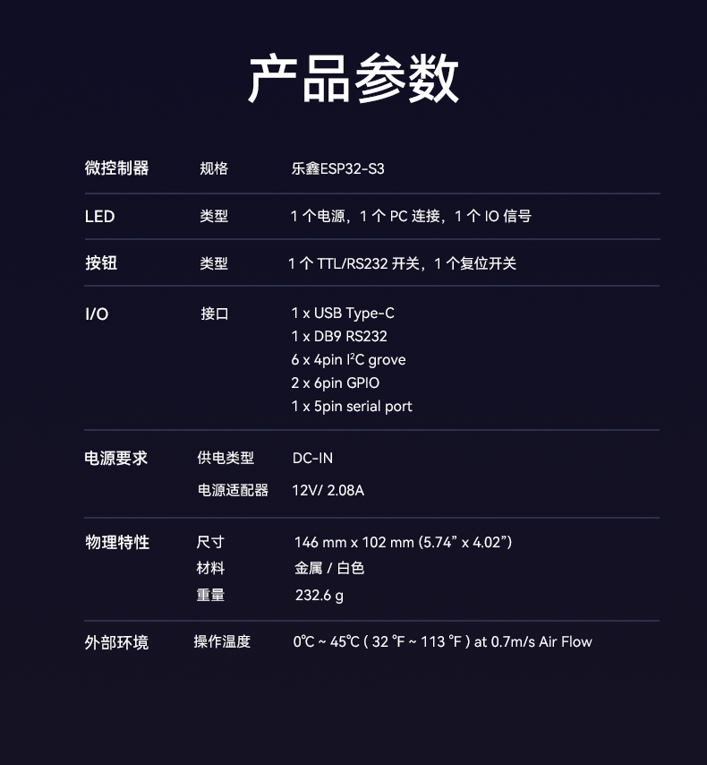 米兰RD01主板采用乐鑫科技的 ESP32-S3 模组作为核心器件,ESP32-S3是一款低功耗的MCU系统级芯片(SoC),集成了高性能的Xtensa®32位 LX7 双核处理器、超低功耗协处理器、Wi-Fi 基带、蓝牙基带、RF 模块以及外设。